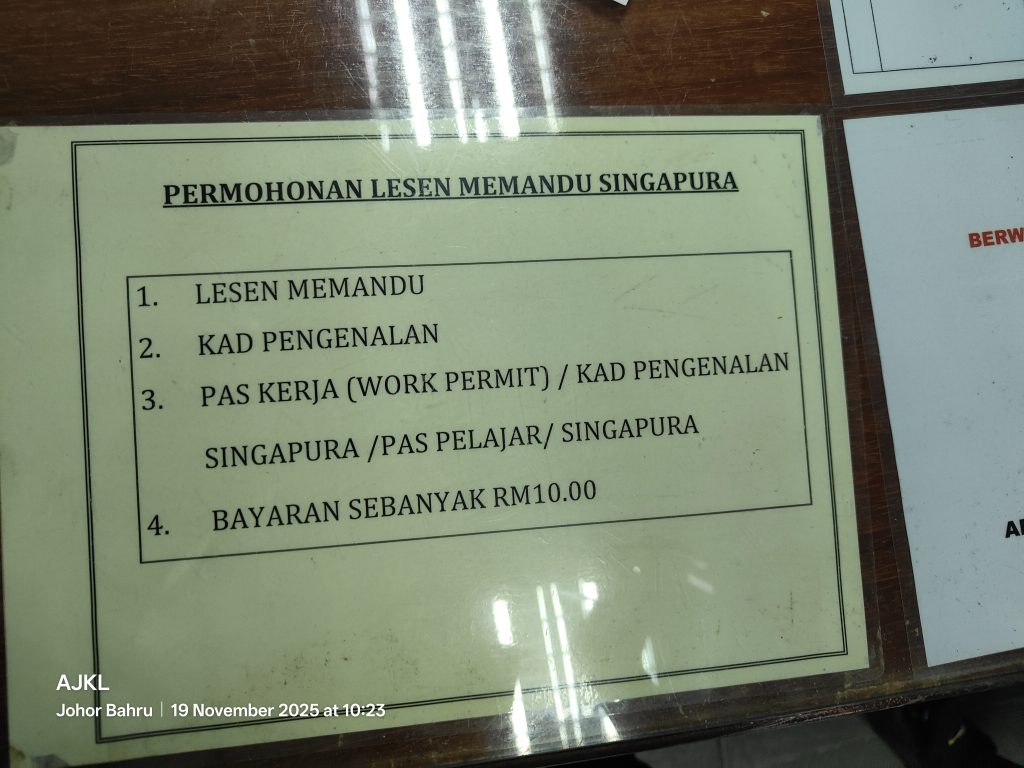 At the left counter, tell the officer you want to apply for a letter to convert your Malaysian licence to a Singapore licence.